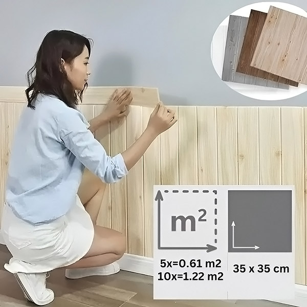 Ogni confezione contiene 5 pezzi (35×35 cm) che coprono 0,61 m². Prima di iniziare, calcolate quante confezioni vi serviranno in base alla superficie della parete. Acquistate più confezioni per spazi più ampi e godete di sconti sul volume!