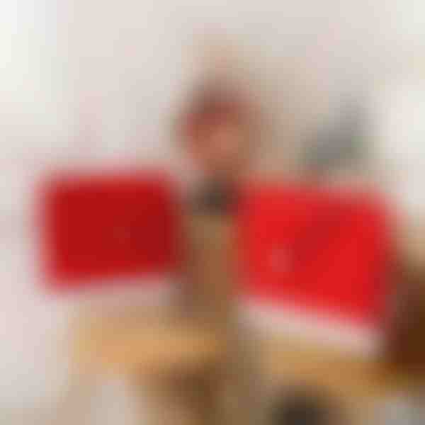 🎄 Colore: rosso Babbo Natale con bordi e pom-pom bianchi