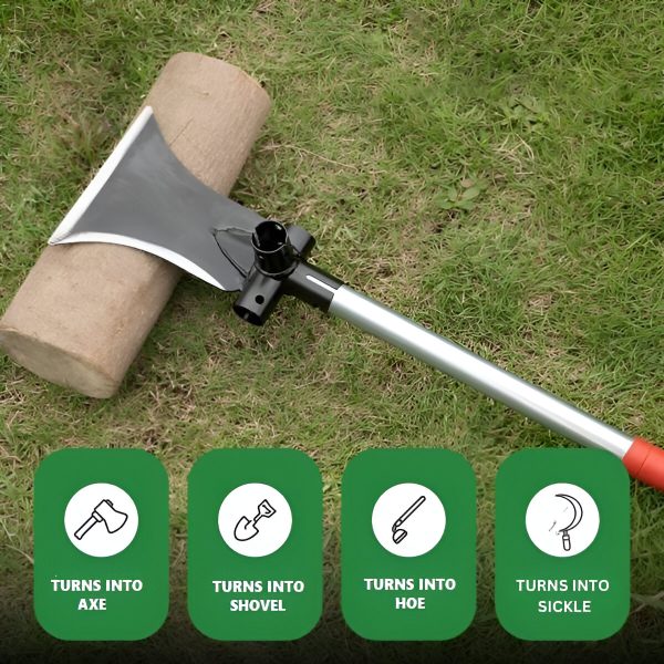 Trasformate VERSAX in un’ascia, una zappa, una falce o una pala grazie alle posizioni regolabili del manico, perfette per ogni sfida di giardinaggio o all’aperto.