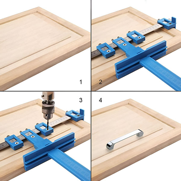 Dopo la foratura, applicare gli accessori (ad esempio, le maniglie dei cassetti) per completare l’installazione con fori perfettamente allineati!