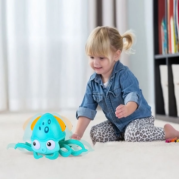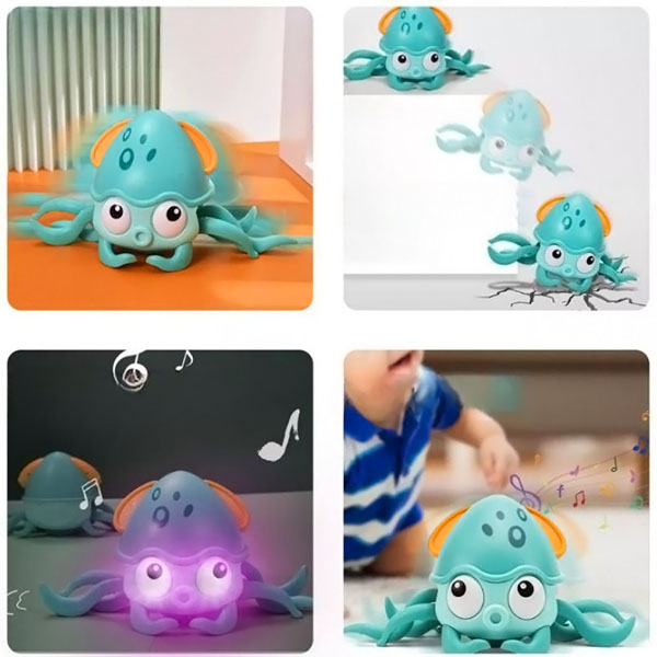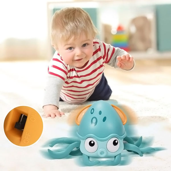 Questo polipo giocoso si muove, stimolando i bambini a seguirlo e a sviluppare le loro capacità motorie.