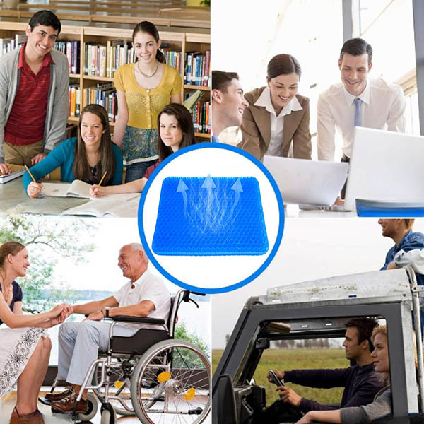 Niente più mal di schiena o fastidi. Questo cuscino si rivolge a zone come i fianchi, il coccige e la parte bassa della schiena, alleviando la pressione dovuta a posture scorrette o a tensioni muscolari. La sua tecnologia in gel garantisce un’esperienza di seduta senza dolore per tutto il giorno.