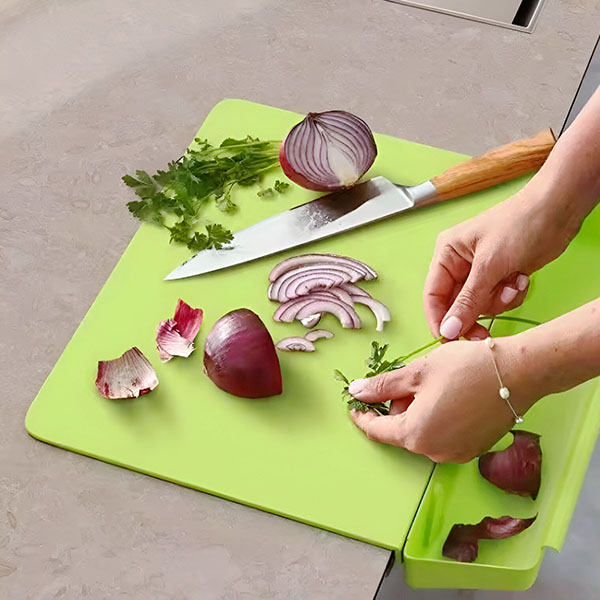Mantenete la vostra cucina ordinata ed efficiente! 🍅🍴 Il contenitore staccabile di questo tagliere raccoglie tutti gli ingredienti tritati, rendendo la preparazione dei pasti un gioco da ragazzi e risparmiando tempo per la pulizia. 🧽✨ Dite addio al disordine sul piano di lavoro!