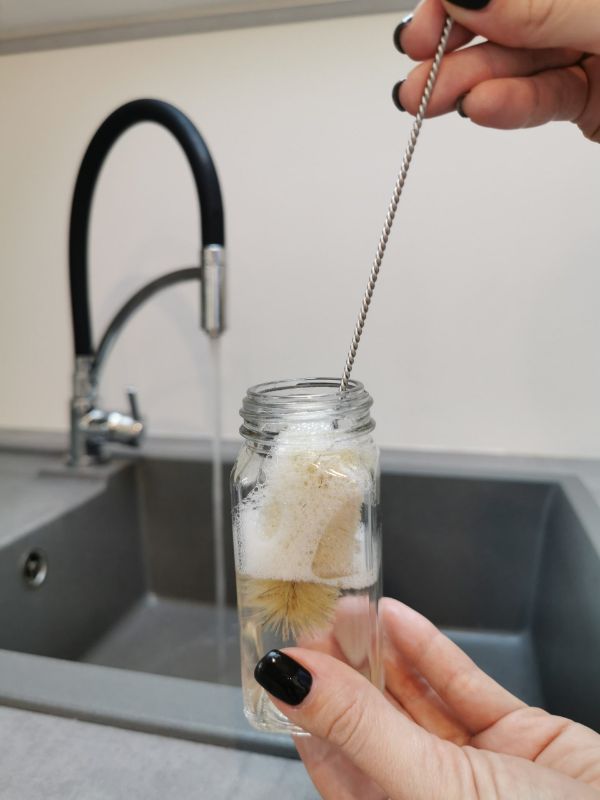 Riceverà inoltre anche un pratico spazzolino per la pulizia, un imbuto in silicone pieghevole e 48 tappi dosatori (2 tipi diversi).