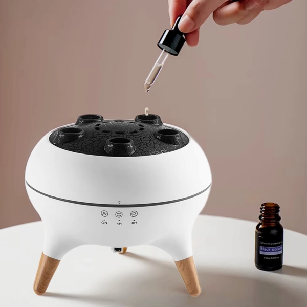 Aggiungi alcune gocce del tuo olio essenziale preferito per migliorare l’atmosfera, creando un’esperienza profumata e personalizzata che si adatta al tuo umore.