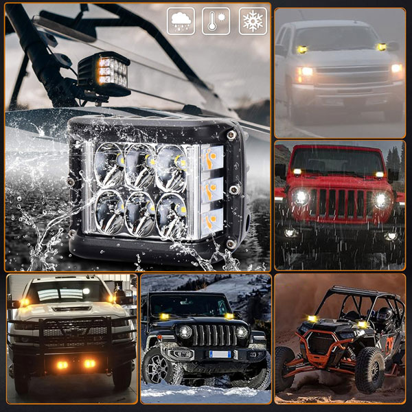 Realizzate con materiali di alta qualità, tra cui una scocca in alluminio resistente alla ruggine e silicone superiore, queste luci sono costruite per resistere a condizioni difficili. Hanno una classificazione di impermeabilità IP68, proteggendo da pioggia, sporco, sabbia e alte temperature. Con una durata di vita superiore a 50.000 ore, il loro design efficiente dal punto di vista energetico aiuta a mantenere la salute della batteria della tua auto.