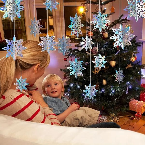 I caratteristici fiocchi di neve 3D appesi a Natale hanno un aspetto splendido quando sono sospesi al soffitto, in corridoi, porte o qualsiasi altro luogo creativo che si possa immaginare.