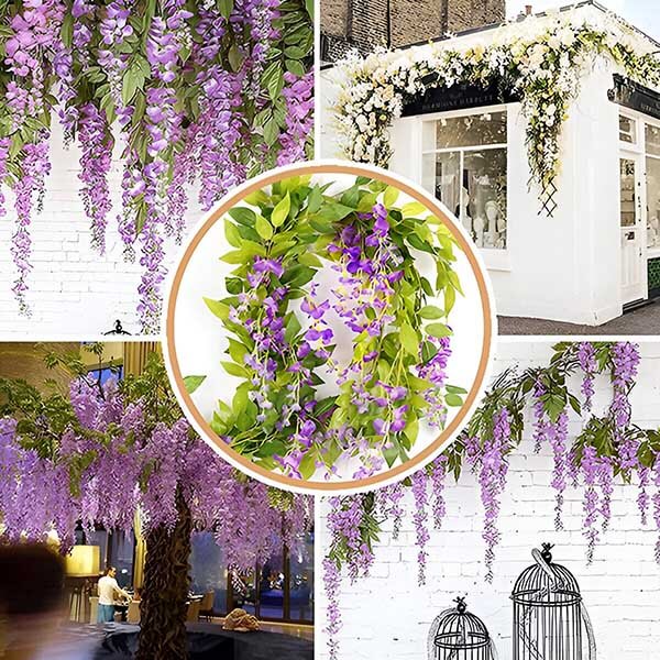 Aggiungete un tocco romantico al vostro matrimonio o evento. Il glicine artificiale di WISBLOOM è ideale per creare splendidi archi e decorazioni nuziali. Questi fiori simboleggiano amore e felicità e conferiscono un’atmosfera calda e romantica a qualsiasi celebrazione.