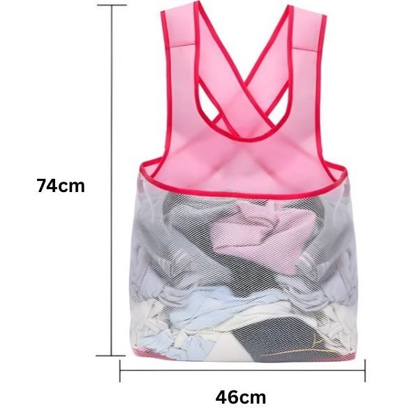 Le ampie tasche del grembiule contengono vestiti, detersivo, telefono, chiavi e tutto ciò che serve per facilitare le faccende domestiche.