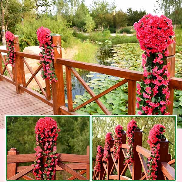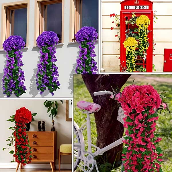 Date un tocco di eleganza a qualsiasi spazio con i nostri fiori artificiali pendenti realistici. Realizzati in squisito tessuto simile alla seta e plastica di alta qualità, questi fiori pendenti aggiungono un fascino naturale all’ambiente circostante.