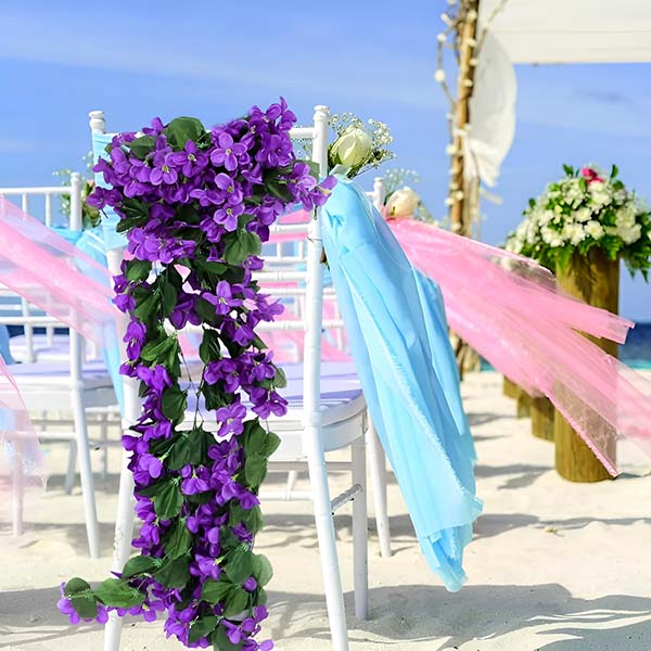 Per rendere più accogliente il vostro salotto, appendete questi fiori intorno alle cornici delle foto, agli specchi o lungo i bastoni delle tende. Sono perfetti per dare un tocco di freschezza alla testata della camera da letto o per creare un ingresso accogliente.