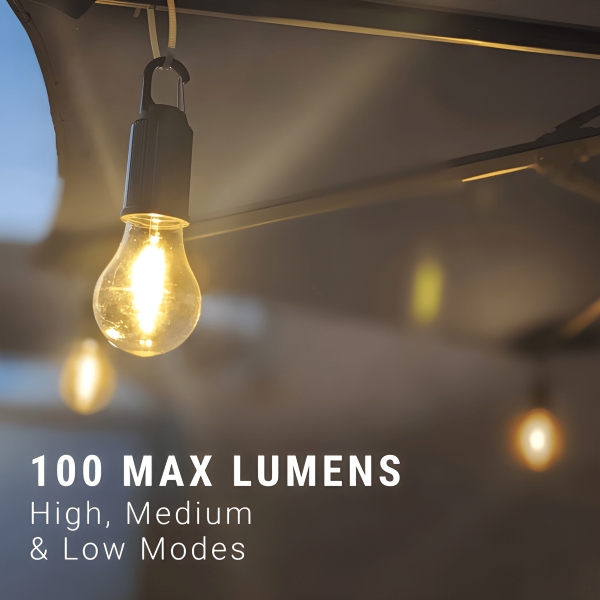 🌟 3 livelli di luminosità – bagliore ambientale per le lunghe notti estive, o luce brillante per cene all’aperto e conversazioni a tarda notte.