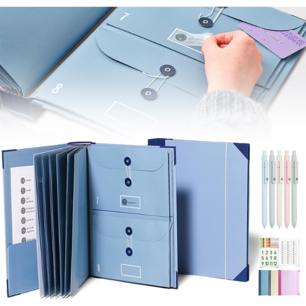 Include 10 buste espandibili (6 di dimensione normale, 4 di mezza dimensione) per contenere fino a 10 fogli ciascuna.