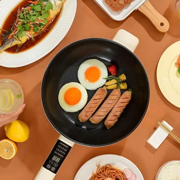 Questa padella elettrica vi permette di preparare pasti completi senza bisogno di un fornello, ideale per qualsiasi spazio.