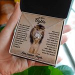 Biglietto esclusivo con messaggio: A mia figlia – Non dimenticare mai che ti voglio bene. Credi in te stessa almeno quanto io credo in te! Quando la vita cercherà di abbatterti, questo vecchio leone sarà sempre pronto a sorreggerti. Non posso prometterti di essere al tuo fianco per il resto della tua vita, ma posso prometterti di amarti per il resto della mia. Sono orgoglioso di essere tuo padre. Con amore, papà