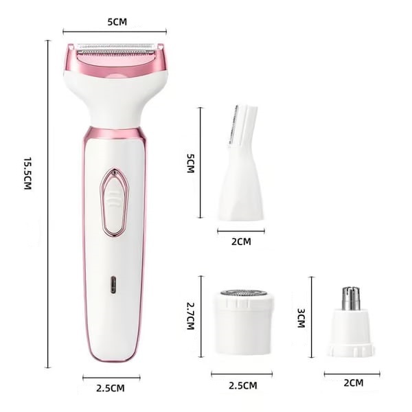 La confezione include: 1 x rasoio elettrico LUNATRIM per una pulizia senza dolore 4 x accessori (naso, viso, sopracciglia, corpo) Cavo di ricarica USB Spazzola di pulizia