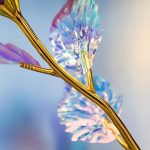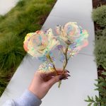 Ogni rosa è realizzata con un rivestimento iridescente e olografico che brilla meravigliosamente alla luce, creando uno scintillio simile a una galassia che è semplicemente ipnotico.