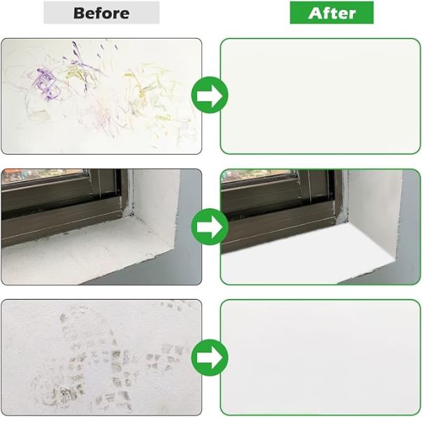 ROLLPAINT rimuove efficacemente macchie, impronte di scarpe e scarabocchi dei bambini sulle pareti.