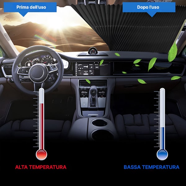 Il nostro prodotto blocca efficacemente i raggi UV dannosi, prevenendo il surriscaldamento e il degrado della tua auto. Aiuta a mantenere un interno più fresco e riduce significativamente i danni ai sedili e al cruscotto della tua auto.