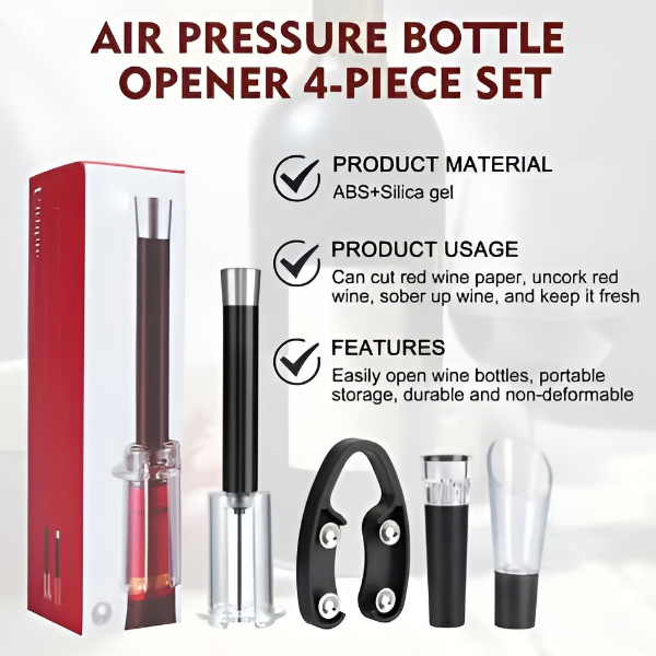 1x Set apribottiglie per vino 4-in-1 con pompa ad aria | AIRCORK
