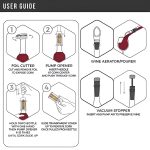 Questo set 4-in-1 include un apribottiglie a pompa d’aria, un tagliacapsule, un aeratore versatore e un tappo sottovuoto per un’esperienza del vino impeccabile.