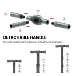 ⚙️ L’impugnatura a cricchetto a forma di T offre maggiore leva e comfort durante l’uso prolungato, rendendo i lavori più semplici