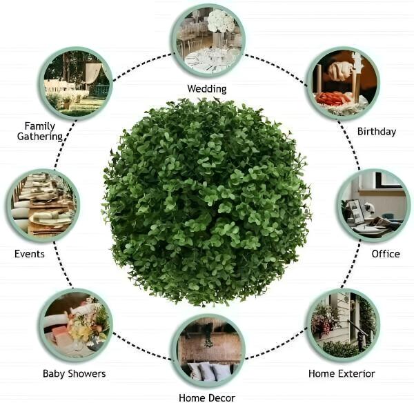 Dimenticatevi la seccatura della cura quotidiana delle piante! Queste sfere di piante artificiali sono progettate per essere splendide in qualsiasi ambiente, sia all’interno che all’esterno. Godetevi il verde vibrante tutto l’anno senza preoccuparvi di appassire o seccare. Perfette per il giardino, il patio, il soggiorno o l’ufficio, queste sfere decorative per piante elevano qualsiasi ambiente senza alcuno sforzo!