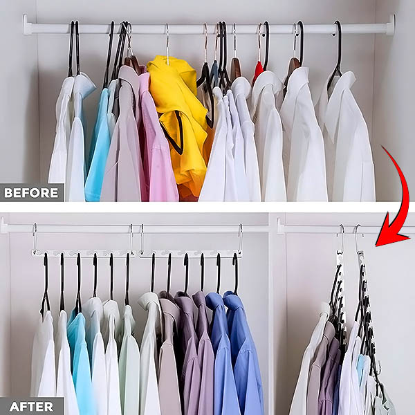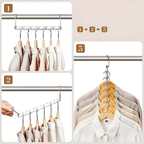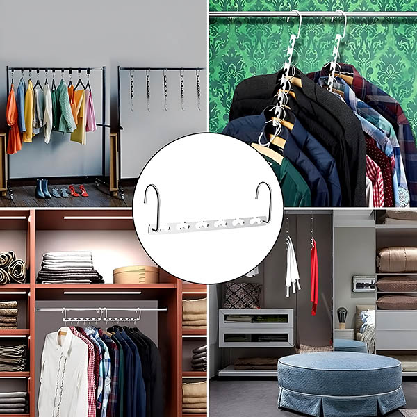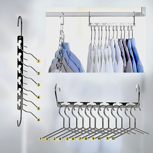 Trasformate il vostro guardaroba con l’appendiabiti SNAPHANG. Ogni appendiabiti può contenere fino a 12 capi di abbigliamento in orizzontale o 6 in verticale, il che lo rende perfetto per ottimizzare lo spazio nell’armadio.