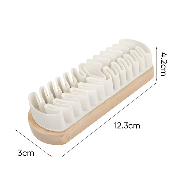 Le morbide setole in gomma sono progettate per pulire le superfici in camoscio e nabuk senza causare graffi, preservando l’integrità delle tue scarpe.