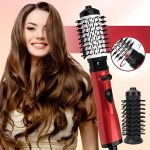 Questo modellatore e asciugacapelli ad aria calda è dotato di due spazzole rotanti intercambiabili.