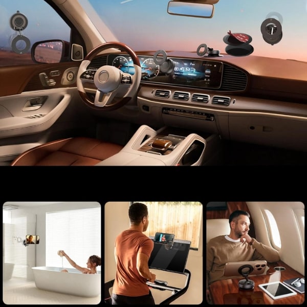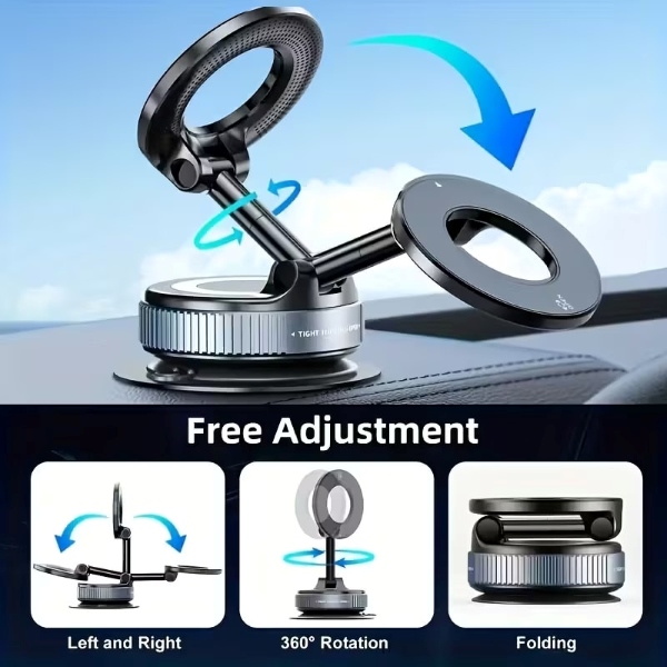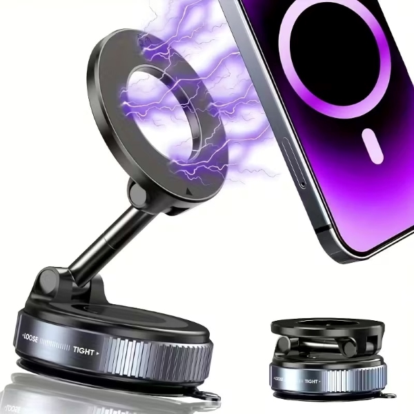 Il supporto per telefono MAGHOLDZ utilizza una potente presa a vuoto che si intensifica con le vibrazioni, mantenendo il telefono saldamente su superfici lisce senza lasciare segni su vetro, cruscotti o scrivanie.