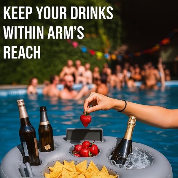 Progettato con 4 portabicchieri e 4 scomparti aggiuntivi, questo vassoio galleggiante offre ampio spazio per bevande, spuntini e altro ancora.