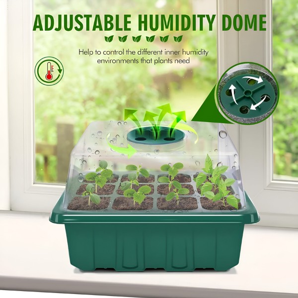 Ogni vassoio ha 12 fori e un coperchio con interruttore di ventilazione. Ora puoi controllare i livelli di umidità e garantire il miglior ambiente per le tue piantine. Coltiva radici sane e ben aerate per piante più forti.