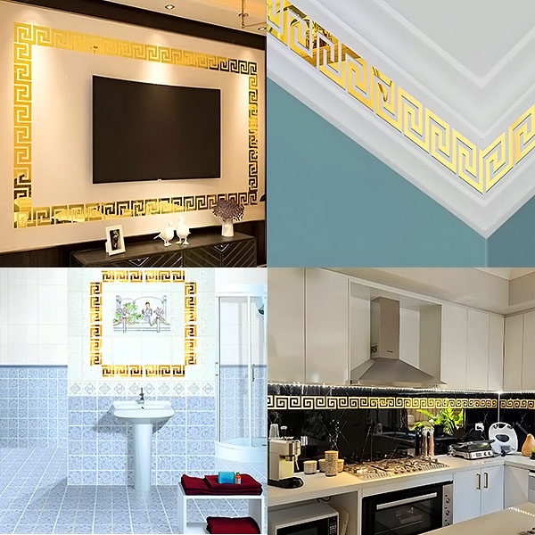 Arredo bagno: migliorate l’arredamento del vostro bagno posizionando gli adesivi sulle pareti o intorno agli specchi, riflettendo la luce e creando un’atmosfera più spaziosa e lussuosa.